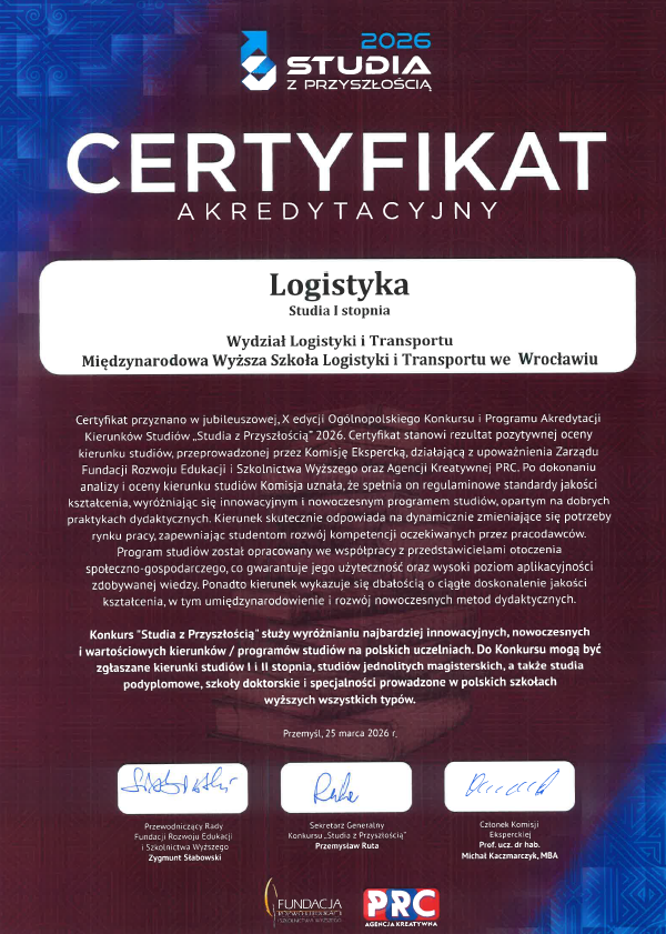 Після аналізу та оцінки заявки Експертна комісія визнала, що MWSLiT має риси та атрибути, що свідчать про реалізацію навчальної програми інноваційним та сучасним способом. Програму спеціальності «Логістика» оцінили як таку, що повністю відповідає потребам ринку праці та зовнішнього середовища.