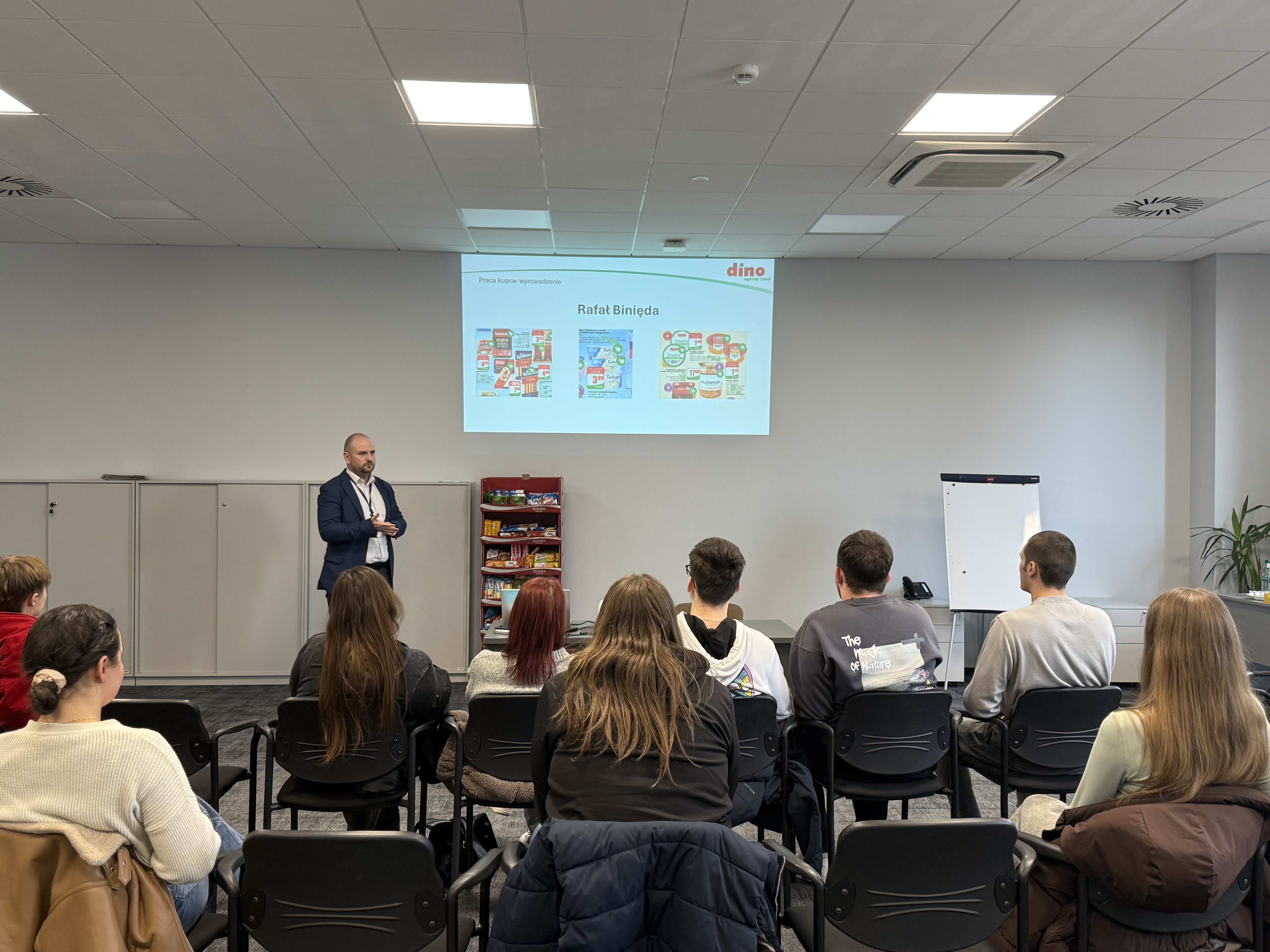 Останнім пунктом програми був візит до супермаркету Dino Polska S.A., де студентам представили правила викладки товарів, а також методи їх контролю та перевірки, що забезпечують підтримання належного рівня стандартів якості та іміджу.