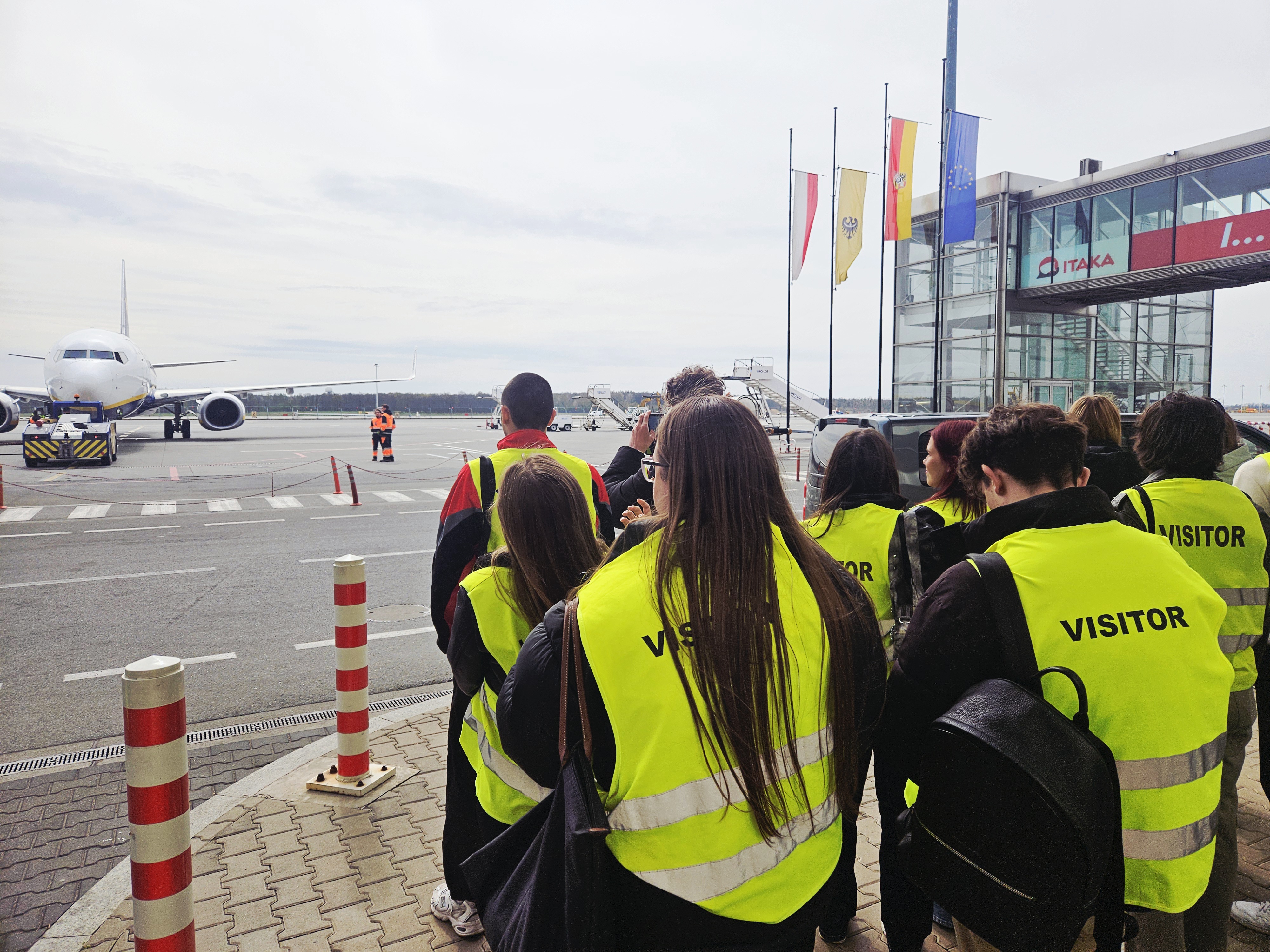 13 квітня 2026 р. відбувся візит до Аеропорту Вроцлав S.A. для студентів факультету «Логістика». Учасники візиту детально ознайомилися з процесом реєстрації квитків і багажу, а також із процедурами контролю безпеки для працівників аеропорту. Вони відвідали зони обмеженого доступу та місця, недоступні для пасажирів. Також мали можливість спостерігати за роботою всієї команди наземного обслуговування аеропорту. Студенти ознайомилися з оснащенням місця стоянки літаків та цікавими аспектами логістичних операцій, що виконуються на пероні аеропорту. Зокрема, вони відвідали сортувальний центр багажу, VIP-зону для пасажирів, а також пункт контролю багажу.